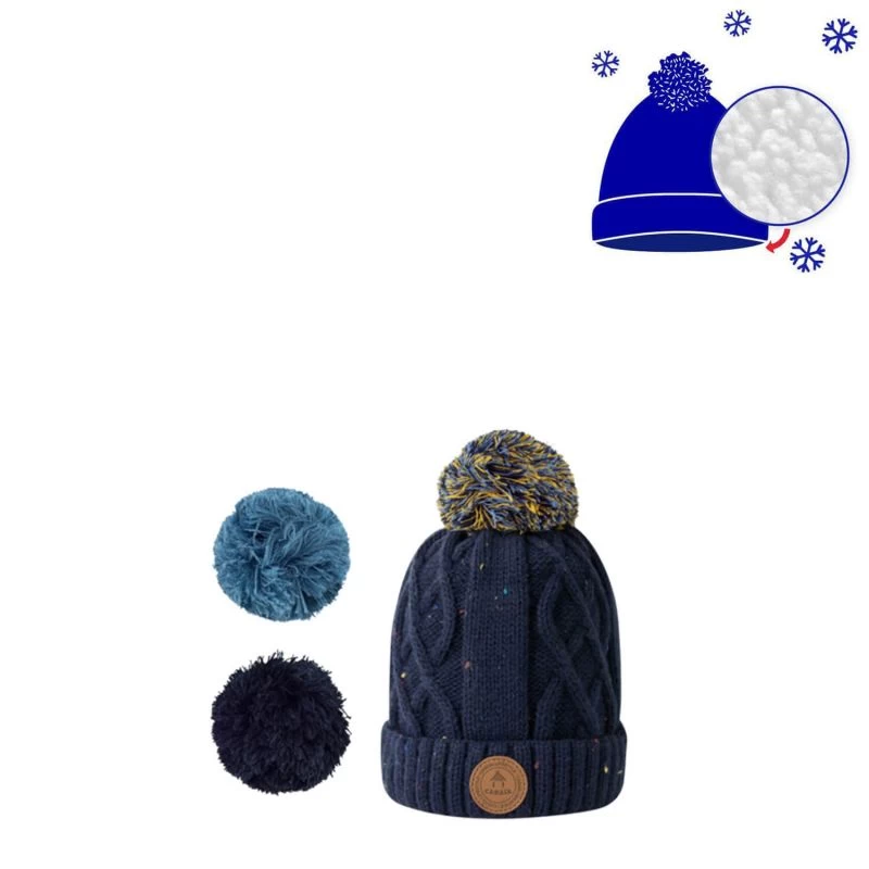 Les autres atouts du bonnet enfant 4-6 ans Cabaïa avec 3 pompons interchangeables Jus de pomme Navy en version polaire :