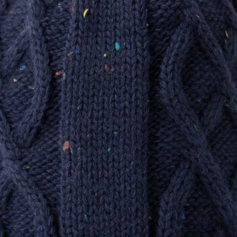Petit atout rigolo, il possède 3 pompons interchangeables par le biais d’un système de pression aimantée. Il est ainsi possible d’assortir le bonnet aux tenues et humeurs. Le bonnet est dans un coloris bleu marine moucheté multicolore très discret. Les 3 pompons associés sont 1 uni bleu marine, 1 uni bleu clair et 1 bicolore bleu et jaune.