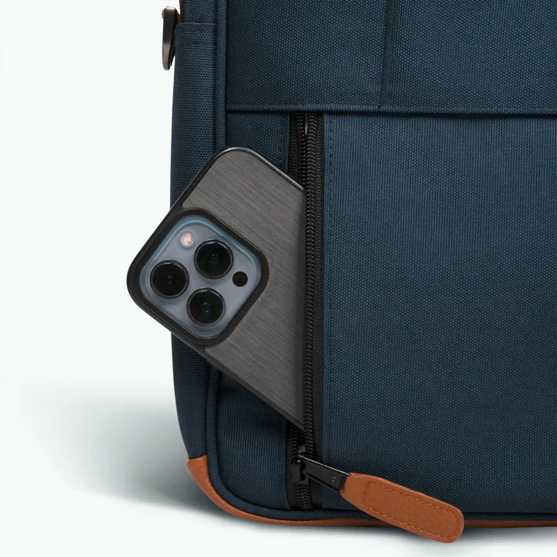 A l’extérieur, le tissu (Nylon 900D) est ultra-résistant, indéchirable et déperlant pour une durée de vie très longue. Une bande permet d’accrocher sa sacoche au trolley d’une valise pour voyager encore plus sereinement. Une petite poche extérieure se situe à l’arrière de la sacoche pour ranger un téléphone ou une carte bancaire par exemple et ainsi le garder à portée de main. A l’avant, une pochette interchangeable à fermeture zippée vous permet de ranger des effets personnels de petite taille.
