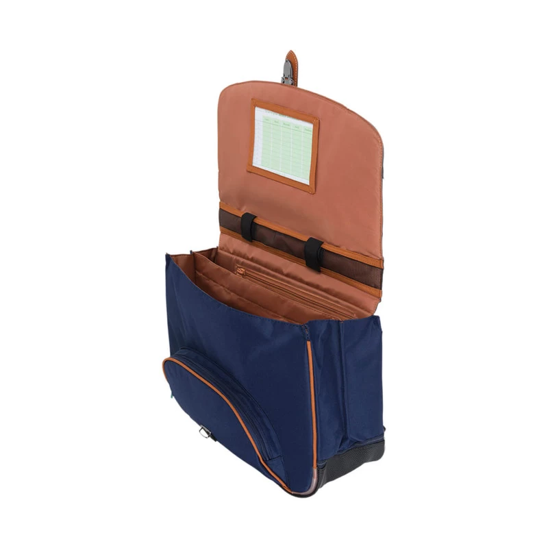 Sous le rabat, on trouve une ribambelle de commodités : Poche zippée, poche spéciale règle et poche planning plastifiée. Le cartable dispose de deux grands compartiments, cela permettra d’accueillir de manière organisée les cahiers 24 x 32 cm, les classeurs et le reste du matériel scolaire. Il offre également toute la place nécessaire pour mettre à l’abri le goûter de votre enfant.