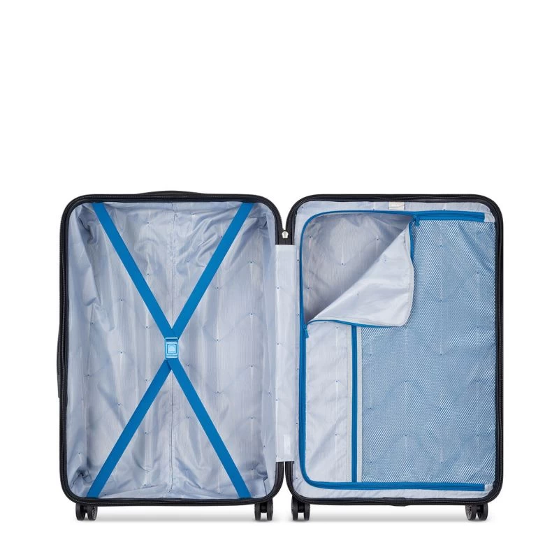 La valise rigide Comete + de 67 cm de la marque Delsey appartient Ă une collection de bagages fonctionnels et sĂ©curisĂ©s. L’ADN de la gamme Comete, est repris : confort, sĂ©curitĂ© et soliditĂ©. Par sa coque moulĂ©e en ABS et Polycarbonate, la robustesse rĂ©pond prĂ©sente. Mais le point qui fait la diffĂ©rence c’est leur Zip Securitech brevetĂ©. En effet ce dernier est 3 fois plus rĂ©sistant aux intrusions qu’une fermeture dite classique, mais aussi par la position ergonomique de la serrure TSA : placĂ©e sur la partie supĂ©rieure du bagage. Son format le traduit comme un bagage soute qui convient aux sĂ©jours d’une durĂ©e d’une Ă deux semaines.