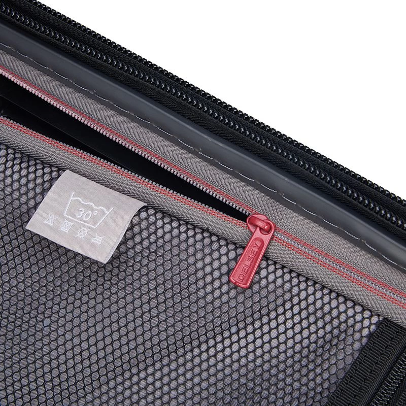 A l’intérieur, vous trouverez deux compartiments distincts, chacun entièrement doublé. Déhoussable et lavable, cette valise est parfaite pour les voyageurs attachés à l’hygiène.