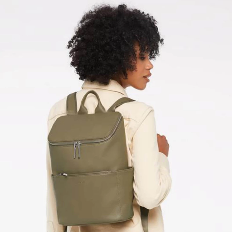 Découvrez le Sac à dos Brave Purity 13 pouces 37cm à l’allure très chic. La marque Matt & Nat propose des produits 100% Vegan, elle tient à ce qu’il n’est aucun composant d’origine animale dans la fabrication. La gamme Purity propose une composition en PVB, c’est-à-dire en Poly-Butyral de Vinyle. Le PVB est une matière plastique majoritairement utilisée dans la fabrication des verres feuilletés : pare brise automobile, vitrage, etc. L’utilisation du PVB recyclé permet de réduire l’empreinte carbone. Le modèle Brave est présenté ici dans le coloris Mineral, un ton uni vert très joli.