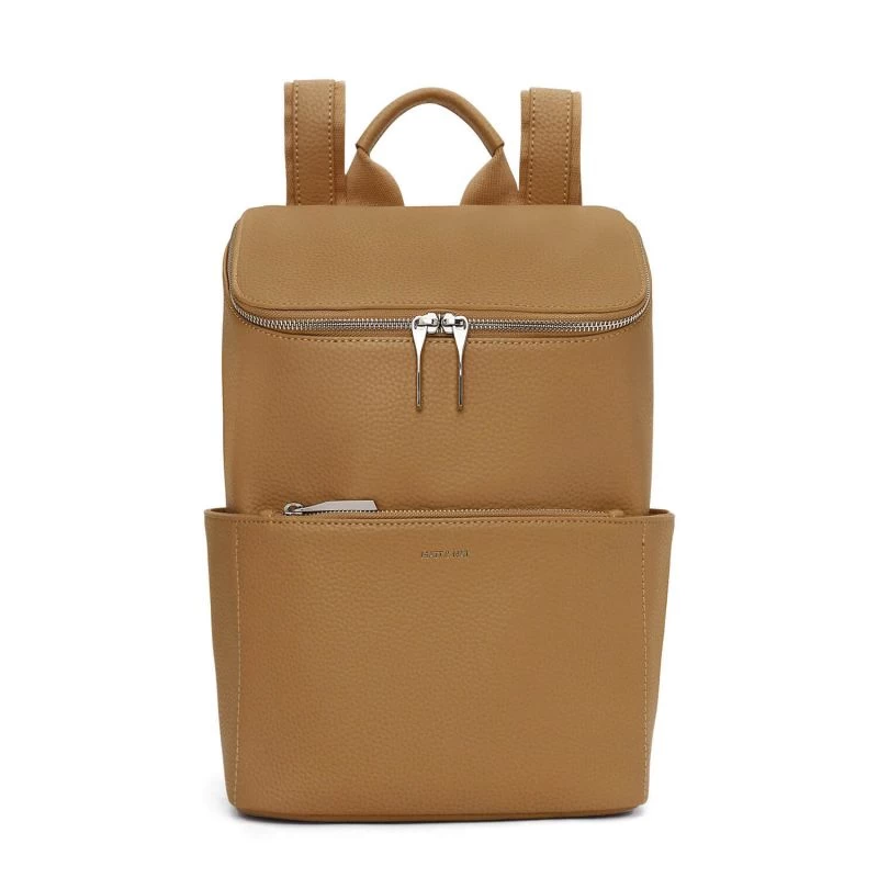 Découvrez le Sac à dos Brave Purity 13 pouces 35,5 cm à l’allure très chic. La marque Matt & Nat propose des produits 100% Vegan, elle tient à ce qu’il n’est aucun composant d’origine animale dans la fabrication. La gamme Purity propose une composition en PVB, c’est-à-dire en Poly-Butyral de Vinyle. Le PVB est une matière plastique majoritairement utilisée dans la fabrication des verres feuilletés : pare brise automobile, vitrage, etc. L’utilisation du PVB recyclé permet de réduire l’empreinte carbone. Le modèle Brave est présenté ici dans le coloris Scone, un ton camel uni très joli.