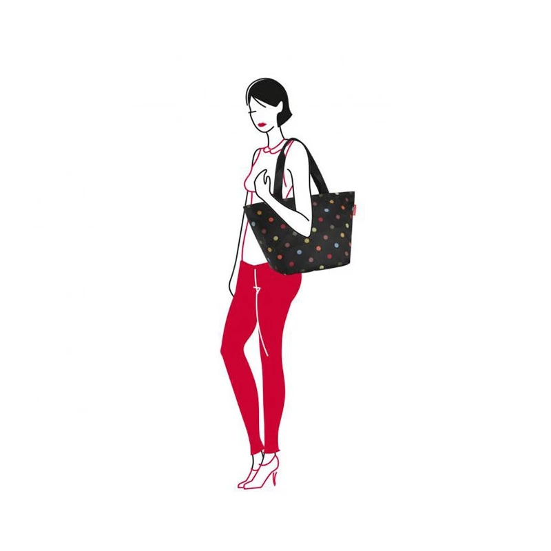 Le Shopper M propose un compartiment principal avec un volume de 15 litres. L’ouverture du sac est refermable par le biais d’une fermeture zippée. En complétement de rangement, une petite poche zippée est présente. Elle peut permettre d’y glisser un peu de monnaie ou de petits accessoires.