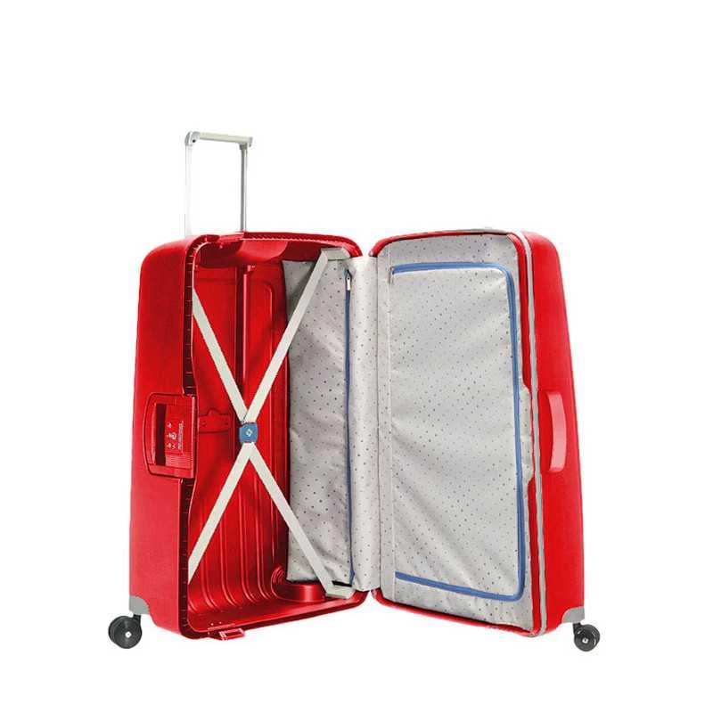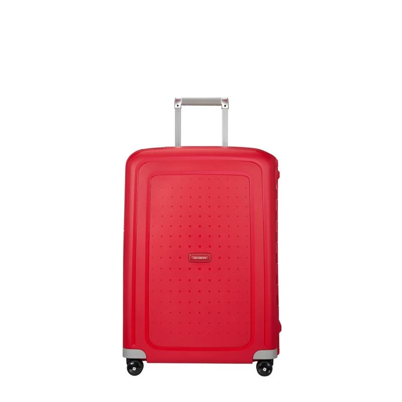La valise rigide Samsonite de la gamme S’Cure 69 cm dans le coloris Crimson red : Matériaux résistants, fermeture doublement sécurisée et 5 ans de garantie