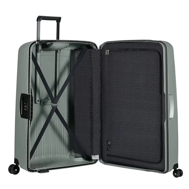 Pour plus de sĂ©curitĂ©, cette valise rigide grand format XL de Samsonite S’Cure Eco utilise un système de fermeture 3 points, sĂ©curisĂ© par une serrure Ă combinaison TSA, recommandĂ©e pour les voyages vers les États-Unis.