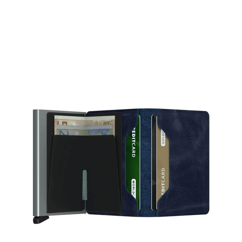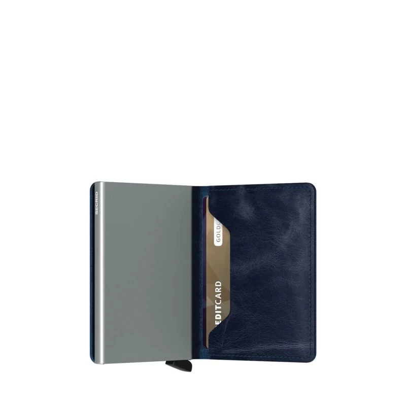 Le porte-cartes Secrid Slimwallet Vintage anti-RFID de 10.2 cm dans le coloris uni Blue : la version compact sans bouton