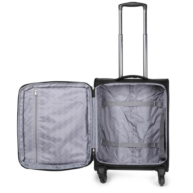 Découvrez la valise cabine souple 54cm Origami de la marque Sohito. Sa composition en polyester lui assure une bonne résistance aux aléas du quotidien et permettra à vos effets de rester bien à l’abri. L’atout de ce modèle est la présence d’un soufflet d’extension à zip permettant d’augmenter la capacité d’accueil de quelques litres supplémentaires.